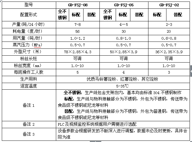 7、一機(jī)多能。生產(chǎn)線通過增減配置可以生產(chǎn)不同的原料,如馬鈴薯水晶粉絲、紅薯黃金粉絲、方便粉絲等。